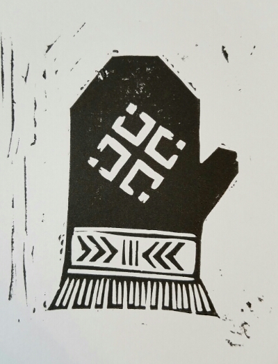 Latvian mitten with a mēness (moon design)